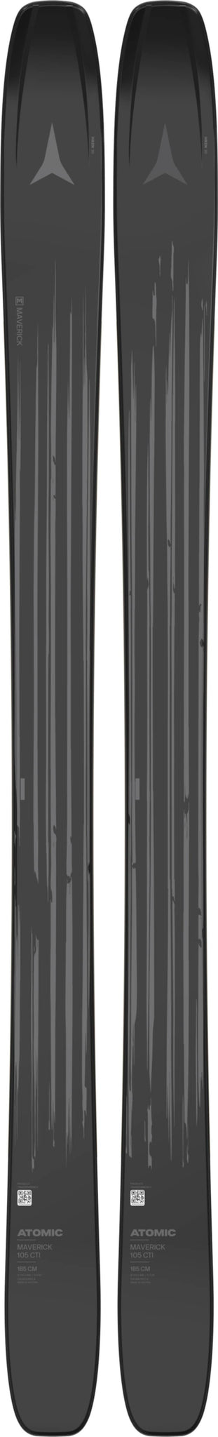 Built to charge and driven to explore, the Atomic Maverick 105 CTI sets the new standard for all-mountain, all-conditions, freeride skis. Engineered just like the Maverick 115 CTI with a slightly more versatile waist width, this Maverick 105 CTI is constructed with the same Power Woodcore, a dynamic ash and poplar wood core that improves stability and reduces vibration at speed. CTI Powered, the core utilizes a mix of carbon and titanal to create the ideal balance of agility and sturdiness for energetic, highly charged skiing. All Mountain Rocker offers greater versatility and the sturdy HRZN 3D tip adds more surface for better float in deeper snow conditions. By using less metal, fiberglass and resin, as well as a topsheet with more recycled content, the lower-impact design reduces environmental waste and cuts material-based CO2 equivalent emissions by 24% (compared with the Maverick 100 TI, 2022). Designed in North America and built in Austria, skiers like Daron Rahlves praise the Maverick 105 CTI for its hard-charging, off-piste, in-resort, all-over versatility.