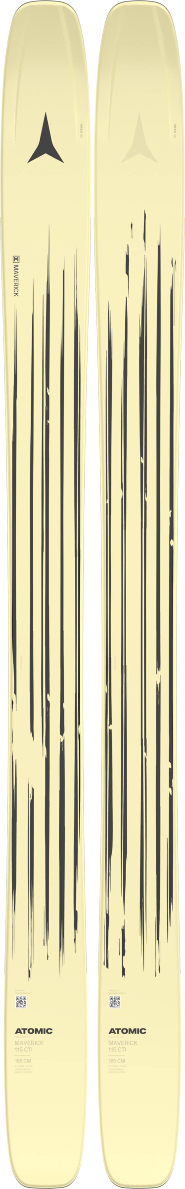 Developed with Atomic freeride athletes and proven on the Freeride World Tour, the all-terrain design of the Atomic Maverick 115 CTI delivers hard-charging, freeride performance with progressive off-piste versatility. The CTI Powered core construction features the perfect mix of carbon and titanal to create a ski that has a rounder, more consistent flex pattern with added torsional stiffness for greater stability, more balance, increased power and better feel. A Power Woodcore utilizes a blend of ash and poplar wood to add sturdiness and dampen vibration. Developed in close collaboration with freeride phenoms like Sage Cattabriga-Alosa and Craig Murray, the 115 waist and sturdy HRZN 3D tip add surface area for better float and a Powder Rocker profile delivers lively handling. The result of a Life Cycle Assessment, the new core construction in the Maverick 115 CTI balances wood and metal with less fiberglass and resin to reduce material-based CO2 equivalent emissions by 24% (compared with the Maverick 100 TI, 2022).