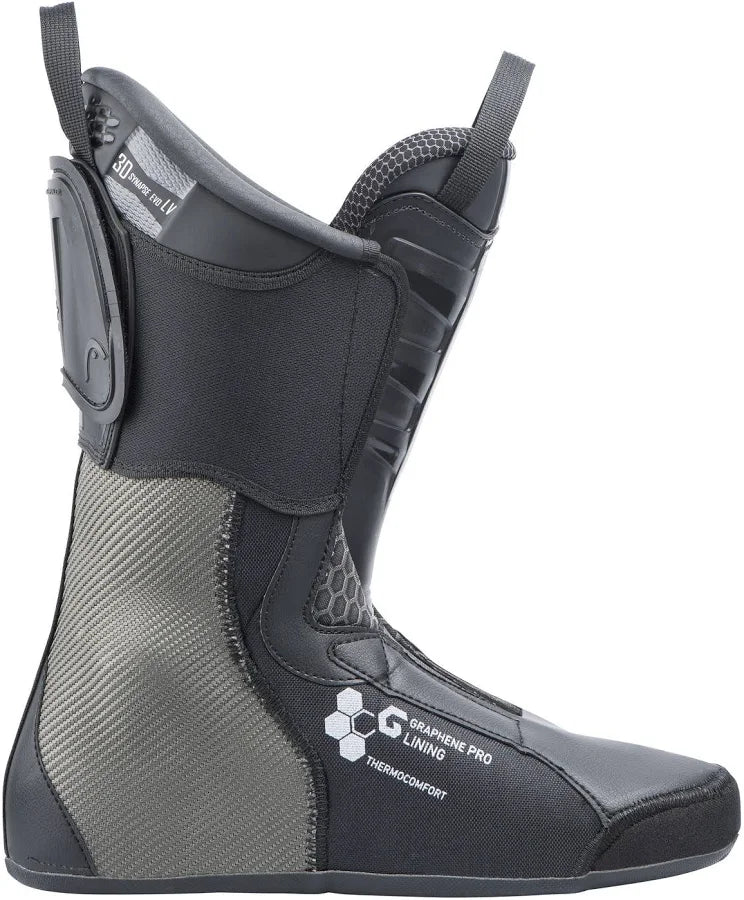 Bi-Injected Shell & Graphene: The shell utilizes a rigid structural frame for immediate energy transfer to the ski, paired with softer plastics over the instep. This "Easy Entry" design is reinforced with Graphene—the world's strongest and lightest material—to maintain a consistent, progressive flex regardless of how cold it gets at the summit.